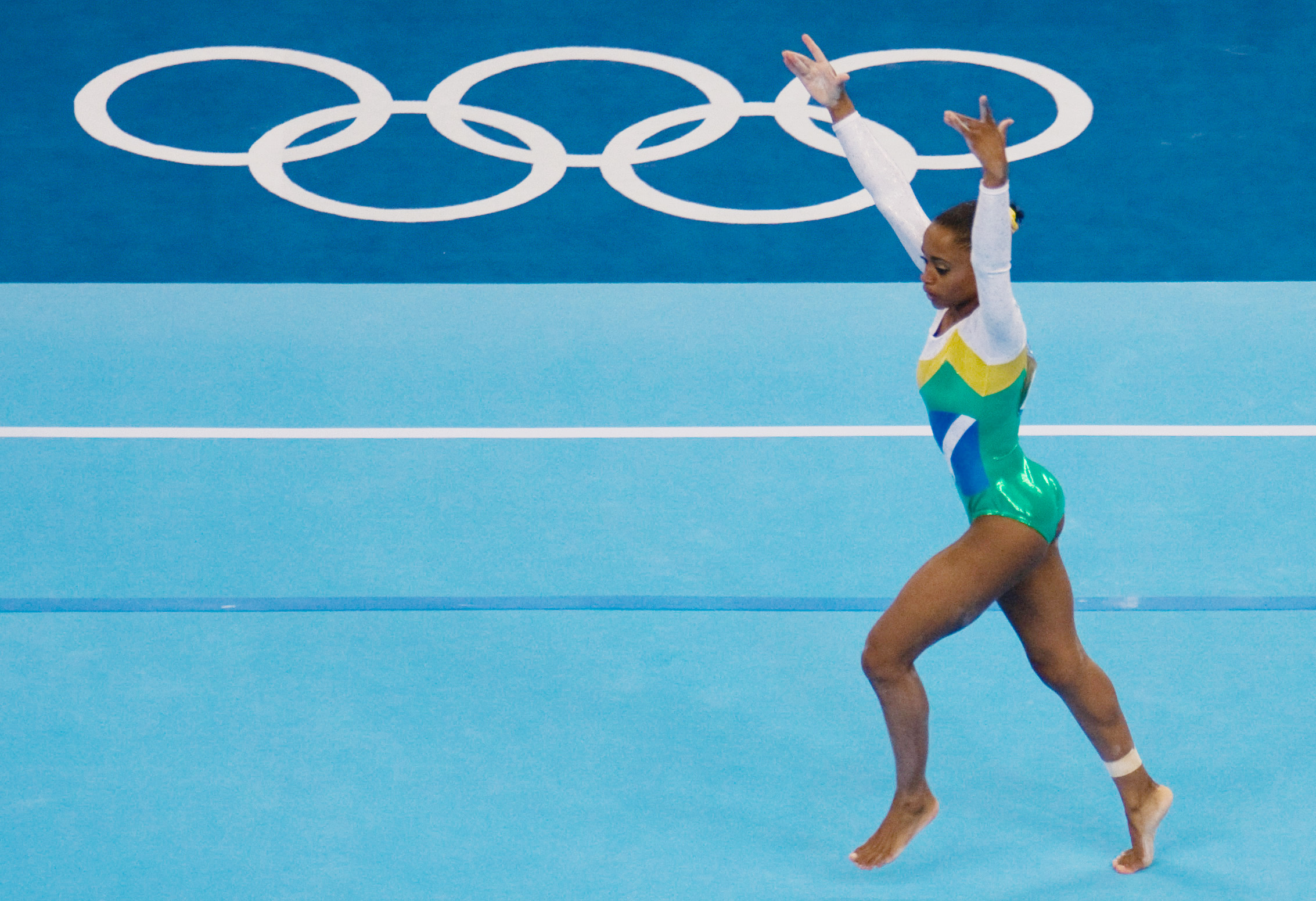 Ela foi a primeira atleta do Brasil, entre mulheres e homens, a conquistar um título mundial na ginástica artística: o ouro no solo em 2003, no Mundial de Anaheim, nos Estados Unidos. Na ocasião, apresentou o até então inédito duplo twist carpado, acrobacia em que se faz uma pirueta seguida de dois mortais na posição carpada – mais tarde, o elemento foi batizado com seu nome, "Dos Santos I".
